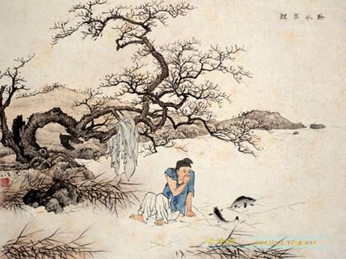 王祥,瑯琊人,生母早喪,繼母朱氏多次在他父親面前說(shuō)他的壞話(huà),使他失去父愛(ài)。父母患病,他衣不解帶侍候,繼母想吃活鯉魚(yú),適值天寒地凍,他解開(kāi)衣服臥在冰上……