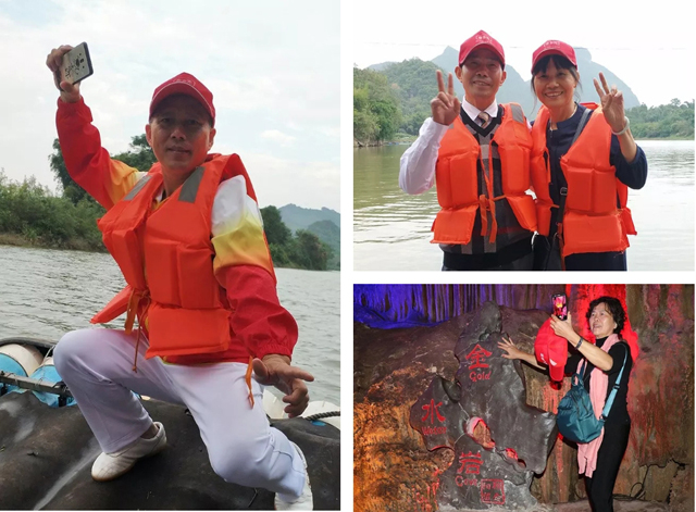 三天的旅程,VIP團一行在孝當先工作人員的貼心陪伴下,坐船游覽了漓江沙子段,感受了西街濃厚的西方文化風情;參觀了明朝桂林第一村——馬嶺鼓寨,觀看了大型山水實景演出——漓水古越,體驗了多人竹筏漂流。此外,大家還在圖騰古道體驗了原始生活,在金水巖見識了陽朔最大、最有特色、最令人開心刺激而且是世界聞名的地下河水晶巖洞等。在醉人的秋光里,大家一路歡歌笑語,欣賞著如畫的美景,呼吸著新鮮的空氣,心情倍感舒暢。