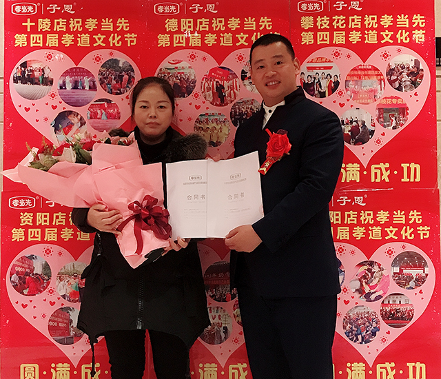 來自重慶長壽區(qū)的唐總經(jīng)商多年,現(xiàn)在自己有一家嬰幼兒用品店和一家中老年奶粉店。由于中老年奶粉店缺乏成熟的盈利模式,銷售情況不是很理想。12月份月,她前去成都參加孝當先第四屆孝道文化節(jié),對孝當先公司的產(chǎn)品、企業(yè)文化、團隊合作模式非常認可,迅速確定簽約!