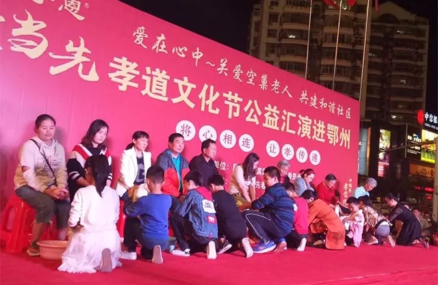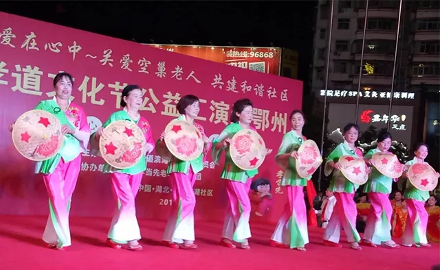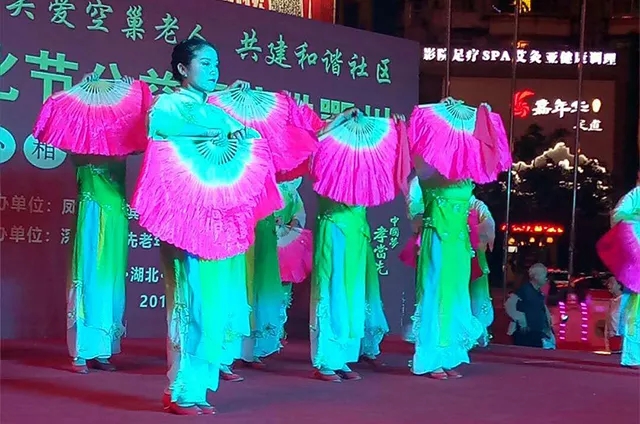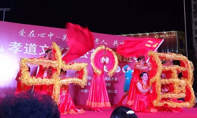 現(xiàn)場(chǎng)圍繞著“關(guān)愛(ài)空巢老人,共建和諧社區(qū)”這一活動(dòng)主題展開(kāi), 節(jié)目豐富多彩、亮點(diǎn)紛呈,內(nèi)容涵蓋歌曲、舞蹈、旗袍秀等多種藝術(shù)形式。一段優(yōu)美的開(kāi)場(chǎng)舞《情系人民》拉開(kāi)了序幕,接下來(lái),扇子舞《山里的人樂(lè)得好瀟灑》活波歡快,旗袍秀《塞北的雪》動(dòng)作優(yōu)美、韻味十足,歌曲《最美的歌獻(xiàn)給媽媽》深情動(dòng)人,爵士舞《SOLO》動(dòng)感十足,精彩節(jié)目還有花球舞《好運(yùn)送給你》、健身舞《?;丶铱纯础?,扇子舞《在希望的田野上》,鬼步舞《妹妹不哭》,彩球舞《大時(shí)代》,斗笠舞《萬(wàn)泉河水》,扇子舞《我們的中國(guó)夢(mèng)》等。特別是孝道感恩環(huán)節(jié),十組孝心家庭的兒女為父母洗腳,互相擁抱場(chǎng)面感人,讓人動(dòng)容。