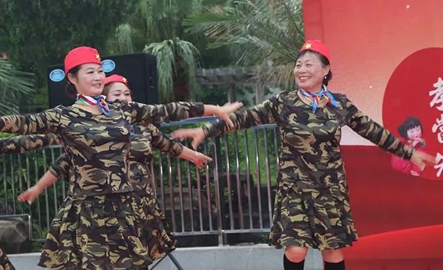 演出接近尾聲時,天公不作美,下起了大雨,絲毫不受影響的阿姨們繼續(xù)保持最完美的狀態(tài)為大家表演,雨中的舞臺也別是一番風情。讓我們?yōu)樗齻凕c贊。