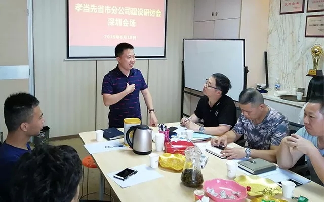 ▲孝當(dāng)先集團(tuán)深圳分公司總經(jīng)理彭永健做分公司發(fā)展建設(shè)經(jīng)驗(yàn)分享