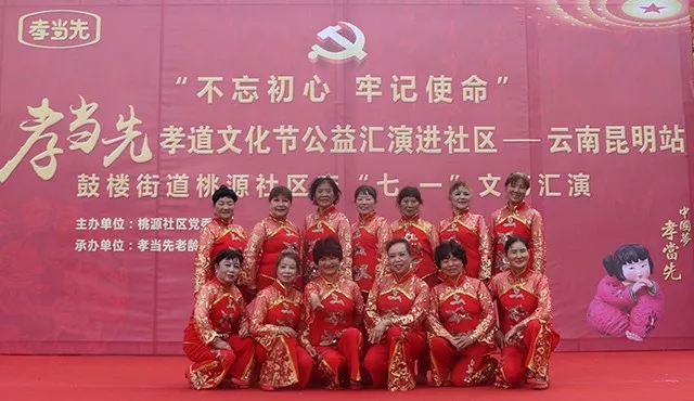 為了弘揚(yáng)孝道文化、慶祝“七一”,讓中老年人生活更健康、和諧、幸福,近日,由桃源社區(qū)黨委主辦,孝當(dāng)先老齡產(chǎn)業(yè)集團(tuán)、孝當(dāng)先羊奶專(zhuān)賣(mài)店昆明首日封店協(xié)辦的孝當(dāng)先孝道文化節(jié)公益匯演進(jìn)社區(qū)——云南昆明站首日封分會(huì)場(chǎng)隆重舉辦!來(lái)自社區(qū)的14支文藝團(tuán)隊(duì)紛紛獻(xiàn)上了拿手節(jié)目,整場(chǎng)演出吸引眾多觀眾觀看。