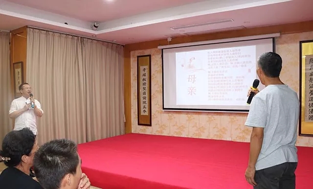 會上,孝當先集團董事長周國兵回顧了孝當先四周年的發(fā)展,重點介紹了孝當先的創(chuàng)始初衷,弘揚孝道文化取得的成績,新項目“康養(yǎng)基地”的會員福利,“幸福家道”課程為中老年人帶來的益處等。周董的介紹,讓與會的叔叔阿姨們聽得激動又開心!