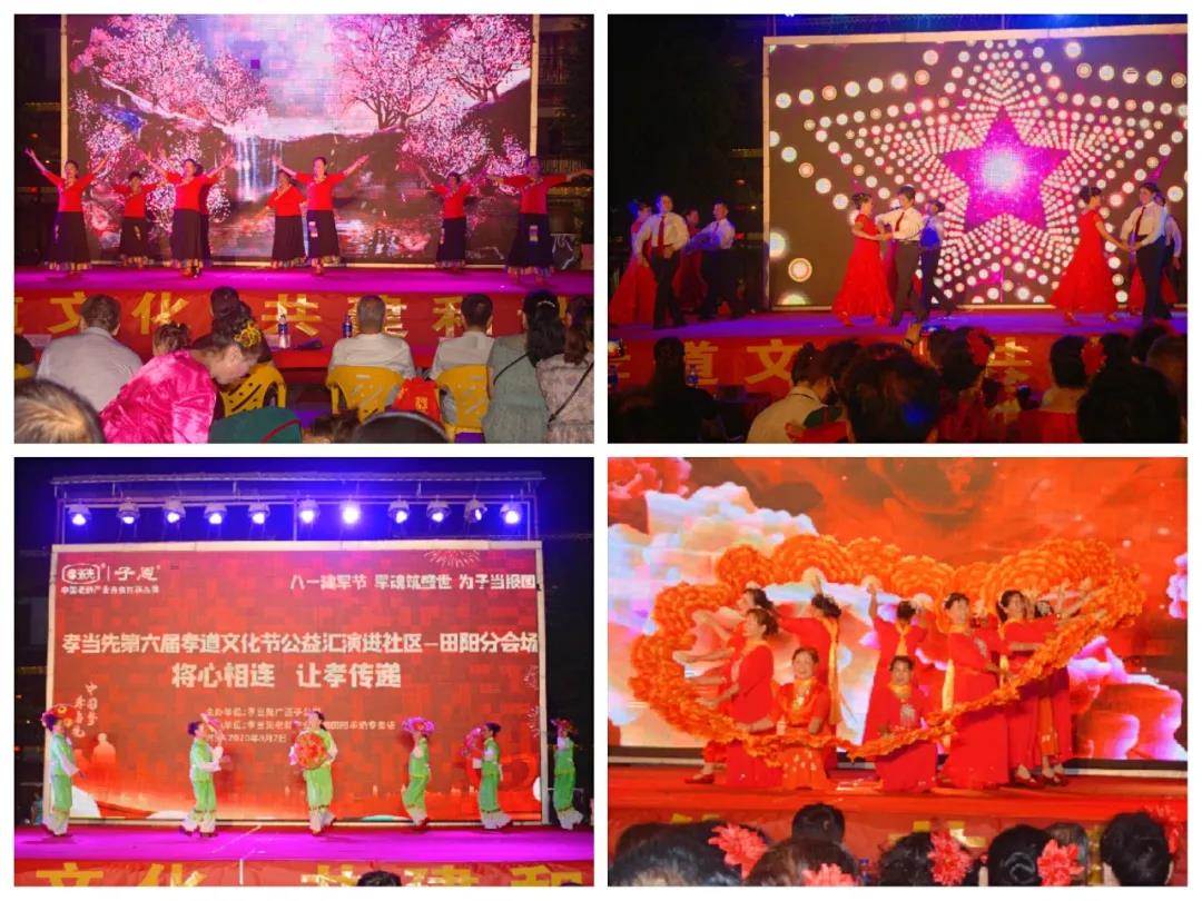 孝當先自2015年成立起,在提高中老年人的身心健康及生活品質(zhì)的同時,更為孝道的實施和推廣發(fā)揮積極作用而不斷努力著。以“感動田陽孝心人物征選”為題的廣西區(qū)域萬人孝道文化節(jié)活動,感人至深的感恩傳孝環(huán)節(jié)尤其令人動容。當孩子們角色轉(zhuǎn)換,彎下腰蹲至父母跟前,細心地為其洗腳擦拭之時,當抬眼望向彼此的瞬間,溫馨感人氛圍瞬間讓人動容,全場皆為之熱淚盈眶…人之行,莫大于孝,為積極響應(yīng)我國弘揚孝親敬老納入社會主義核心價值觀宣傳教育為導(dǎo)向,建設(shè)具有民族特色、時代特征的敬老愛老中華民族傳統(tǒng)美德,孝當先萬人孝道文化節(jié)公益匯演進社區(qū)活動,將會懷著追尋初心,旨在不余遺力地弘揚、踐行孝道文化為核心,年復(fù)一年地持續(xù)下去!