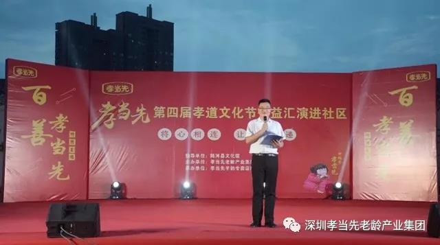 “有孝方知家中暖”,孝道,是中華民族的優(yōu)秀文化和傳統(tǒng)美德,是家庭幸福、社會(huì)和諧的基石。在過(guò)去的三年里,孝當(dāng)先集團(tuán)成功舉辦了三屆大型孝道文化節(jié)活動(dòng)及一系列公益活動(dòng)來(lái)弘揚(yáng)孝道文化,踐行孝道文化,贏得社會(huì)各界的高度認(rèn)可和一致好評(píng)。孝當(dāng)先第四屆《萬(wàn)人孝道文化節(jié)》公益匯演進(jìn)社區(qū)活動(dòng),持續(xù)弘揚(yáng)中華民族敬老愛(ài)老的傳統(tǒng)美德,積極擔(dān)負(fù)起“為國(guó)家分憂(yōu),幫父母解難,替兒女盡孝”的社會(huì)責(zé)任,在提高老年人的身心健康,提升老年人的生活品質(zhì)的同時(shí),也為孝道的實(shí)施和推廣發(fā)揮積極作用!