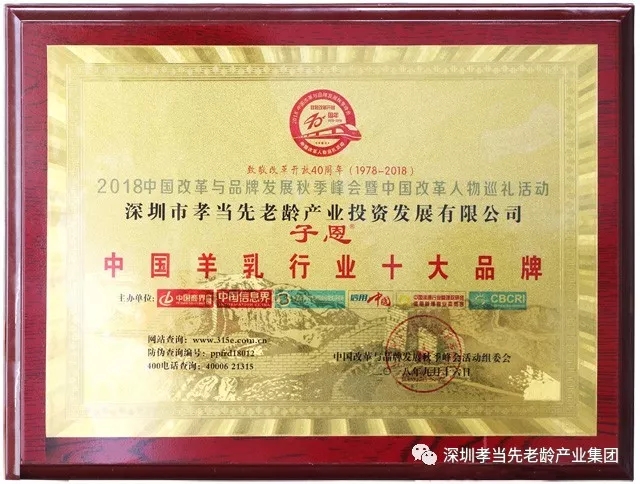 喜訊:“2018中國改革與品牌發(fā)展秋季峰會(深圳)暨中國改革人物巡禮活動”在深圳隆重舉辦,鑒于孝當(dāng)先集團(tuán)在品牌創(chuàng)新、品質(zhì)管控和客戶服務(wù)等方面取得的成就,旗下“子恩”品牌榮獲“中國羊乳行業(yè)十大品牌”殊榮。