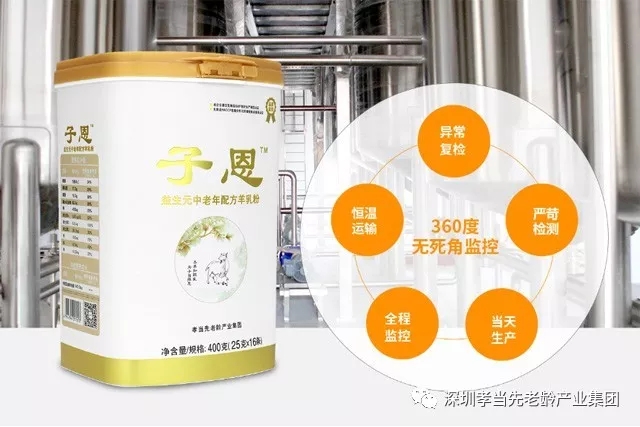 “子恩”品牌羊乳粉是由孝當(dāng)先老齡產(chǎn)業(yè)集團(tuán)攜手陜西和氏乳業(yè)集團(tuán)聯(lián)袂打造的羊乳制品高端品牌。“子恩”羊乳粉嚴(yán)格篩選優(yōu)質(zhì)奶源,奶源來源于57萬畝生態(tài)牧場、海拔2125米優(yōu)質(zhì)高寒川牧場及6個標(biāo)準(zhǔn)化示范養(yǎng)殖基地,從源頭上保障“子恩”羊乳粉的安全可控。每一罐“子恩“羊乳粉皆秉承“營養(yǎng)全面、配比均衡”科學(xué)理念,實(shí)現(xiàn)了從鮮奶檢測、標(biāo)準(zhǔn)化配料、濃縮、噴霧、熱敏營養(yǎng)素干混、包裝等全過程智能化生產(chǎn)。在質(zhì)量檢測上,360度立體監(jiān)測,嚴(yán)苛檢測為品質(zhì)護(hù)航。