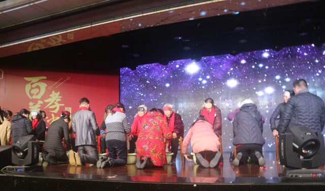 ▲兒女現(xiàn)場為爸爸媽媽、爺爺奶奶洗腳,讓人們明白在生活的點滴中踐行孝道,同時還舉辦了十大孝心家庭頒獎儀式。