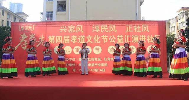 敬老愛老是中華民族的傳統(tǒng)美德。孝當(dāng)先集團(tuán)秉承“以商養(yǎng)善,孝行天下”的企業(yè)使命,擔(dān)負(fù)起“為國(guó)家分憂,幫父母解難,替兒女盡孝”的社會(huì)責(zé)任,傳承孝道文化,弘揚(yáng)中華民族敬老愛老的傳統(tǒng)美德,全力發(fā)展老齡事業(yè),提高老年人的身心健康,提升老年人的生活品質(zhì)。在過去的三年里,集團(tuán)成功舉辦了三屆大型孝道文化節(jié)活動(dòng)及一系列公益活動(dòng)來弘揚(yáng)孝道文化,踐行孝道文化,贏得社會(huì)各界的高度認(rèn)可和一致好評(píng)。孝當(dāng)先第四屆孝道文化節(jié)公益匯演進(jìn)社區(qū)活動(dòng),持續(xù)弘揚(yáng)中華民族傳統(tǒng)美德,為社區(qū)形成“愛老、敬老、助老”的良好氛圍,構(gòu)建幸福家園打下堅(jiān)實(shí)基礎(chǔ)。