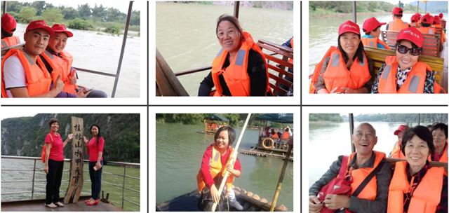 三天的旅程,VIP團一行在孝當先工作人員的貼心陪伴下,坐船游覽了漓江沙子段,感受了西街濃厚的西方文化風情;參觀了明朝桂林第一村——馬嶺鼓寨,觀看了大型山水實景演出——漓水古越,體驗了多人竹筏漂流。此外,大家還在圖騰古道體驗了原始生活,在金水巖見識了陽朔最大、最有特色、最令人開心刺激而且是世界聞名的地下河水晶巖洞等。在醉人的秋光里,大家一路歡歌笑語,欣賞著如畫的美景,呼吸著新鮮的空氣,心情倍感舒暢。