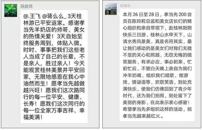 溫馨的旅程結束后,叔叔阿姨紛紛發(fā)表感言,感謝孝當先工作人員的辛勤付出,感謝他們無微不至的關心和照顧,讓大家度過了三天愉快的時光!下面選取部分留言分享給大家: