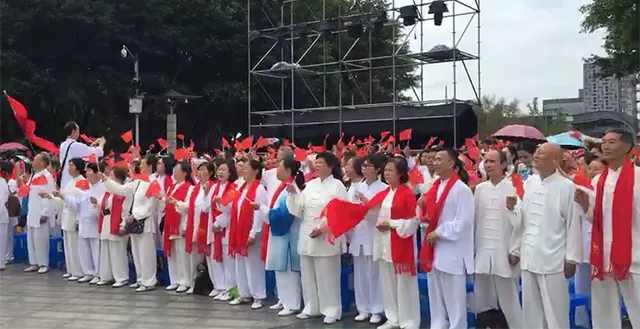 德陽市旌陽街道文廟社區(qū)黨支部書記米燕、德陽市民政局黨建促進會副主席李曉光、旌陽區(qū)民政局福利救濟股股長周光磊、德陽市精神文明辦主任冷紅、副科長朱國文、德陽市城市管理行政執(zhí)法支隊直屬一大隊隊長黃利云、旌陽區(qū)老人寶養(yǎng)老服務(wù)中心文惠君、德陽市陽光太極拳俱樂部理事長范傳榮、孝當先集團四川分公司總經(jīng)理莊金科、運營總監(jiān)李興萍,以及社區(qū)18支團隊1000多人參加了活動。