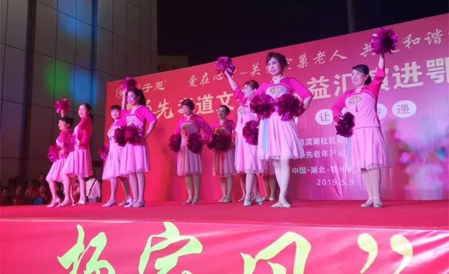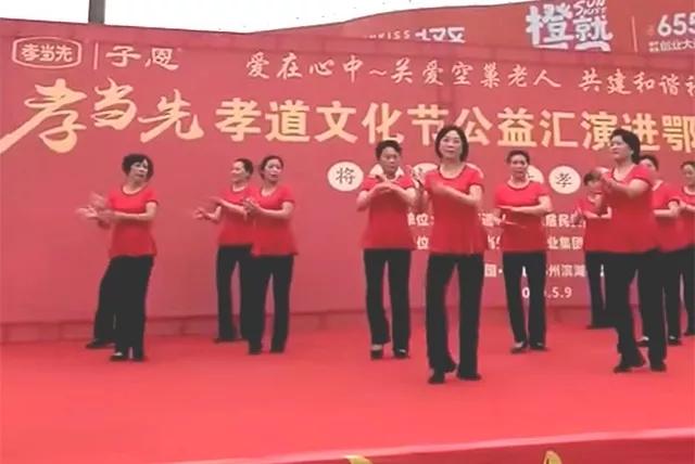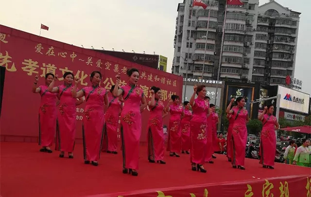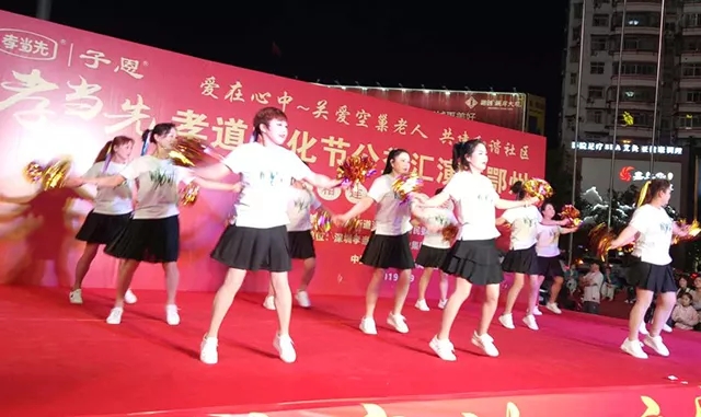 現(xiàn)場(chǎng)圍繞著“關(guān)愛(ài)空巢老人,共建和諧社區(qū)”這一活動(dòng)主題展開(kāi), 節(jié)目豐富多彩、亮點(diǎn)紛呈,內(nèi)容涵蓋歌曲、舞蹈、旗袍秀等多種藝術(shù)形式。一段優(yōu)美的開(kāi)場(chǎng)舞《情系人民》拉開(kāi)了序幕,接下來(lái),扇子舞《山里的人樂(lè)得好瀟灑》活波歡快,旗袍秀《塞北的雪》動(dòng)作優(yōu)美、韻味十足,歌曲《最美的歌獻(xiàn)給媽媽》深情動(dòng)人,爵士舞《SOLO》動(dòng)感十足,精彩節(jié)目還有花球舞《好運(yùn)送給你》、健身舞《?;丶铱纯础?,扇子舞《在希望的田野上》,鬼步舞《妹妹不哭》,彩球舞《大時(shí)代》,斗笠舞《萬(wàn)泉河水》,扇子舞《我們的中國(guó)夢(mèng)》等。特別是孝道感恩環(huán)節(jié),十組孝心家庭的兒女為父母洗腳,互相擁抱場(chǎng)面感人,讓人動(dòng)容。