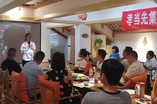▲孝當(dāng)先集團(tuán)運(yùn)營(yíng)總監(jiān)李興萍做團(tuán)隊(duì)經(jīng)驗(yàn)分享
