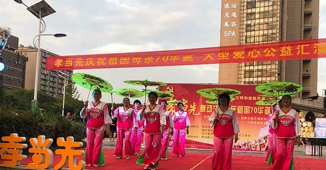 南昌欣悅舞蹈隊(duì)帶來的歡快喜慶開場舞《歡聚一堂》拉開活動(dòng)序幕。東湖區(qū)老年大學(xué)的舞蹈《天下最美花舞人間》動(dòng)感時(shí)尚,鐵路藝華歌舞團(tuán)的《祝福祖國》大氣豪邁,紅葉藝術(shù)團(tuán)的《看山看水看中國》優(yōu)美俏皮,玉河明珠時(shí)裝隊(duì)的《我屬于中國》動(dòng)感時(shí)尚,好姐妹舞隊(duì)的《江南謠》靈動(dòng)優(yōu)美,彩虹陽光舞蹈隊(duì)的《歡樂漁鼓》別具特色,王妃舞隊(duì)的《煙雨江南》裊娜多姿,雅韻舞蹈隊(duì)的《一朵云在藍(lán)天上飄》歡快柔美,明珠柔力球隊(duì)的柔力球表演《祖國您好》自然流暢。