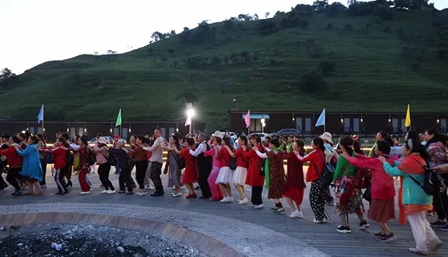 VIP團(tuán)一行于7月4日啟程,歷時(shí)四天。第一站來到了關(guān)山草原。藍(lán)藍(lán)的天空,白白的云彩,綠綠的青草,星星點(diǎn)點(diǎn)的五色野花……遠(yuǎn)離城市,遠(yuǎn)離喧嘩,呼吸著略帶草香的清新空氣,興奮不已。夜幕降臨,草原上升起熊熊篝火,大家唱歌跳舞,盡情狂歡!叔叔阿姨們載歌載舞的盛大場面,吸引了周圍其他游客的目光,紛紛加入到孝當(dāng)先VIP團(tuán)隊(duì)中來,一起盡享歡樂時(shí)光。
