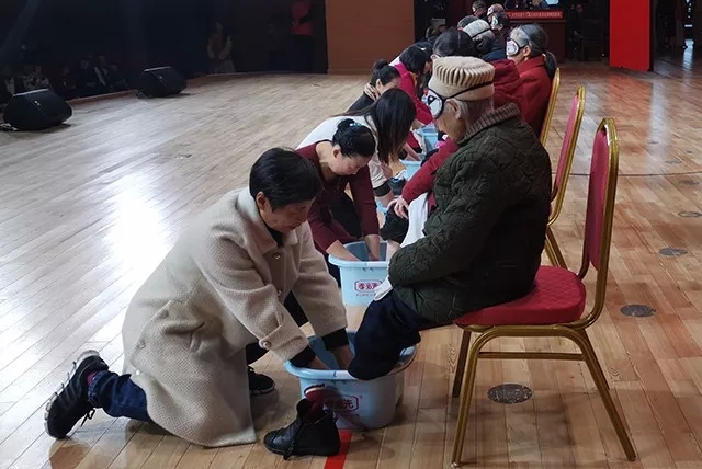 活動(dòng)還穿插了孝道感恩互動(dòng)環(huán)節(jié)。在《時(shí)間都到哪里去了》旋律中,孝心家庭的子女膝跪地為長(zhǎng)輩泡腳、洗腳、按摩、擁抱…….溫馨的場(chǎng)景,讓參與人員和現(xiàn)場(chǎng)觀(guān)眾熱淚盈眶。