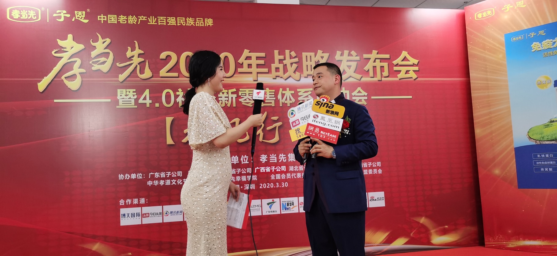 2020年3月30日下午2:30分,一場(chǎng)以“春風(fēng)行動(dòng)”為主題的特別的春季發(fā)布會(huì) ——《孝當(dāng)先2020戰(zhàn)略發(fā)布會(huì)暨4.0社交新零售體系啟動(dòng)會(huì) 》,在CCTV 《信用中國(guó)》特約主持人林滿的主持下,以孝當(dāng)先老齡產(chǎn)業(yè)集團(tuán)總部為圓心面向全國(guó)各大片區(qū),隆重舉行!