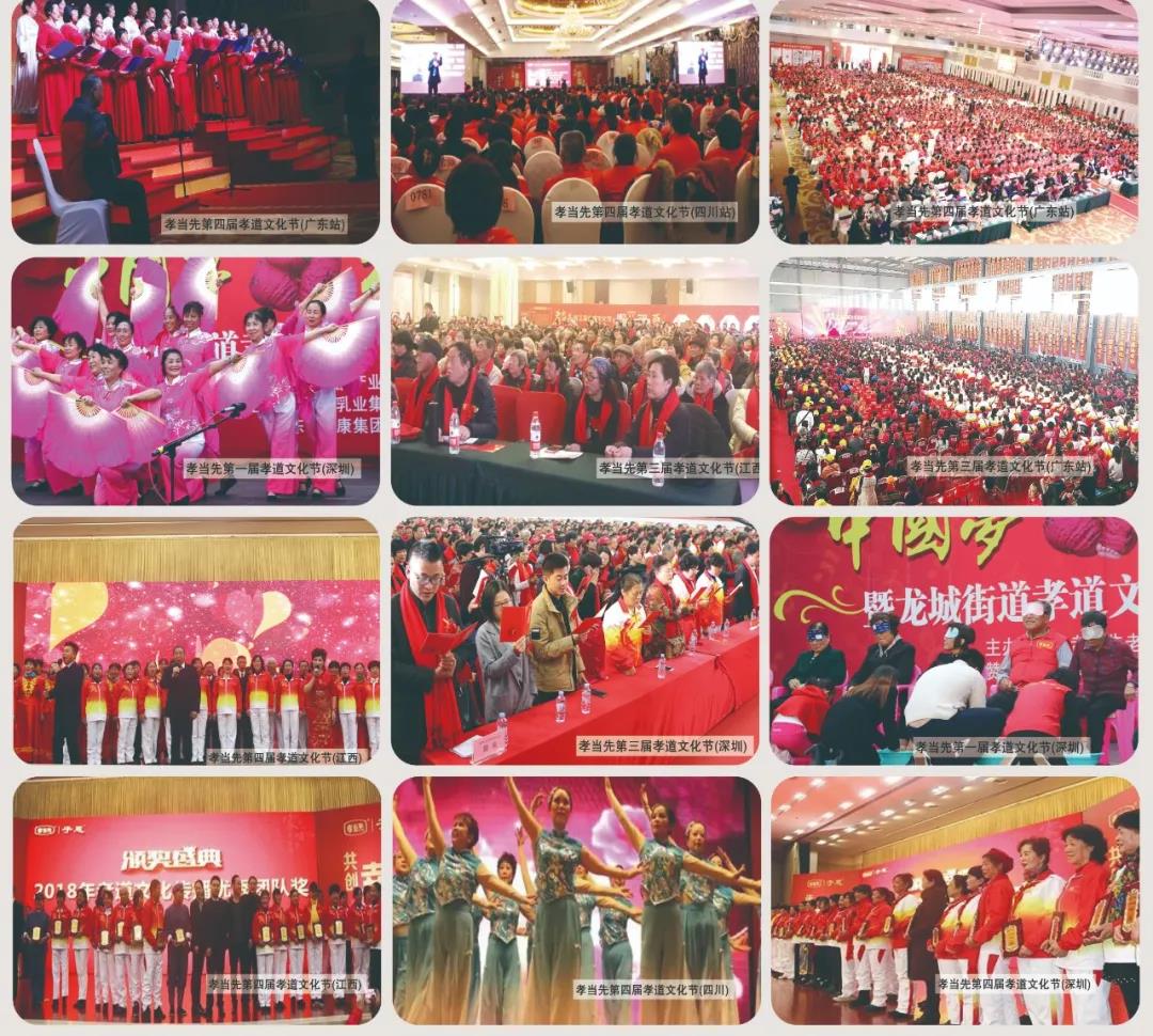 孝當先自2015年成立起,在提高中老年人的身心健康及生活品質(zhì)的同時,更為孝道的實施和推廣發(fā)揮積極作用而不斷努力著。以“感動田陽孝心人物征選”為題的廣西區(qū)域萬人孝道文化節(jié)活動,感人至深的感恩傳孝環(huán)節(jié)尤其令人動容。當孩子們角色轉(zhuǎn)換,彎下腰蹲至父母跟前,細心地為其洗腳擦拭之時,當抬眼望向彼此的瞬間,溫馨感人氛圍瞬間讓人動容,全場皆為之熱淚盈眶…人之行,莫大于孝,為積極響應(yīng)我國弘揚孝親敬老納入社會主義核心價值觀宣傳教育為導(dǎo)向,建設(shè)具有民族特色、時代特征的敬老愛老中華民族傳統(tǒng)美德,孝當先萬人孝道文化節(jié)公益匯演進社區(qū)活動,將會懷著追尋初心,旨在不余遺力地弘揚、踐行孝道文化為核心,年復(fù)一年地持續(xù)下去!